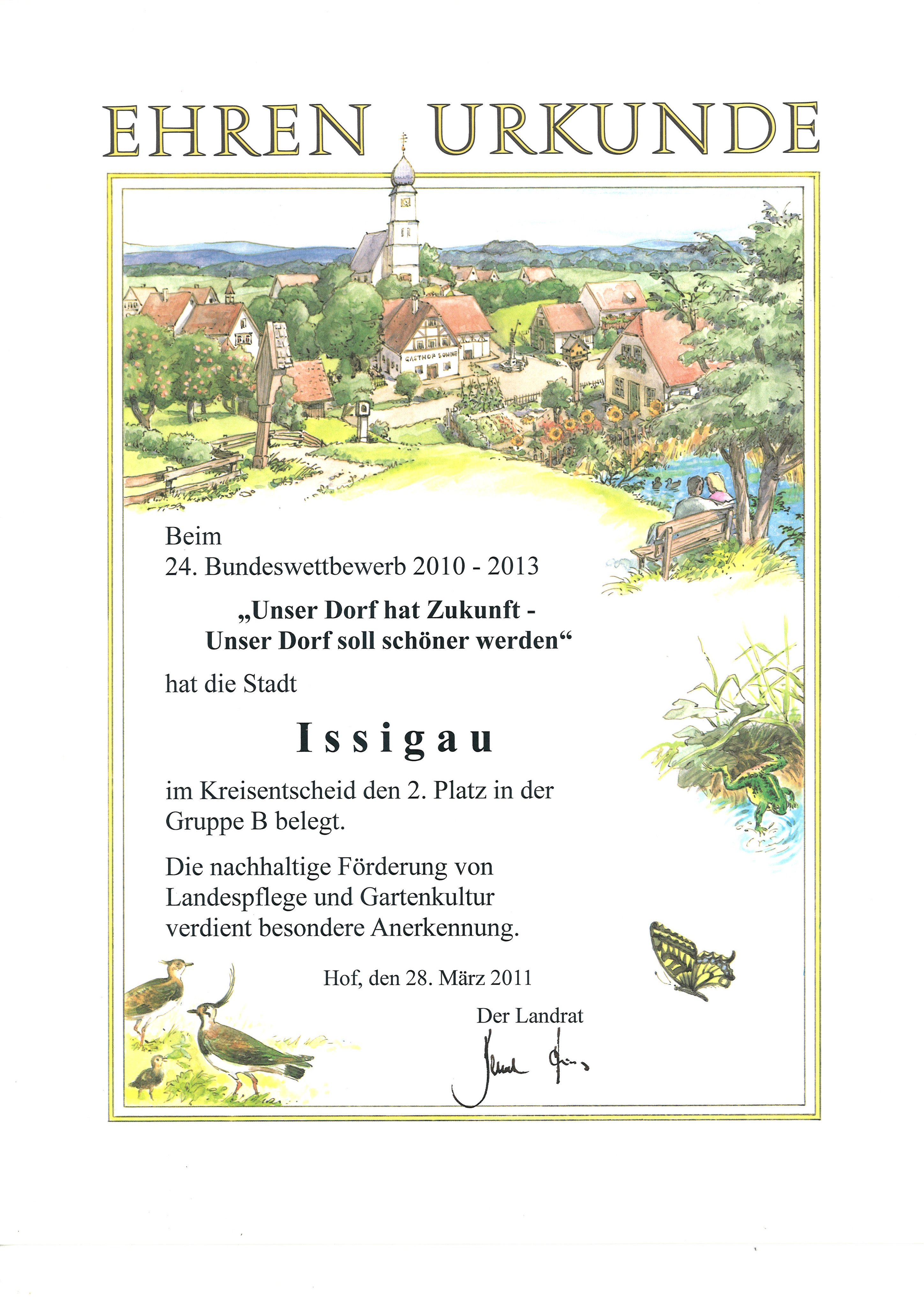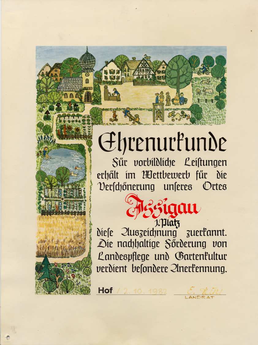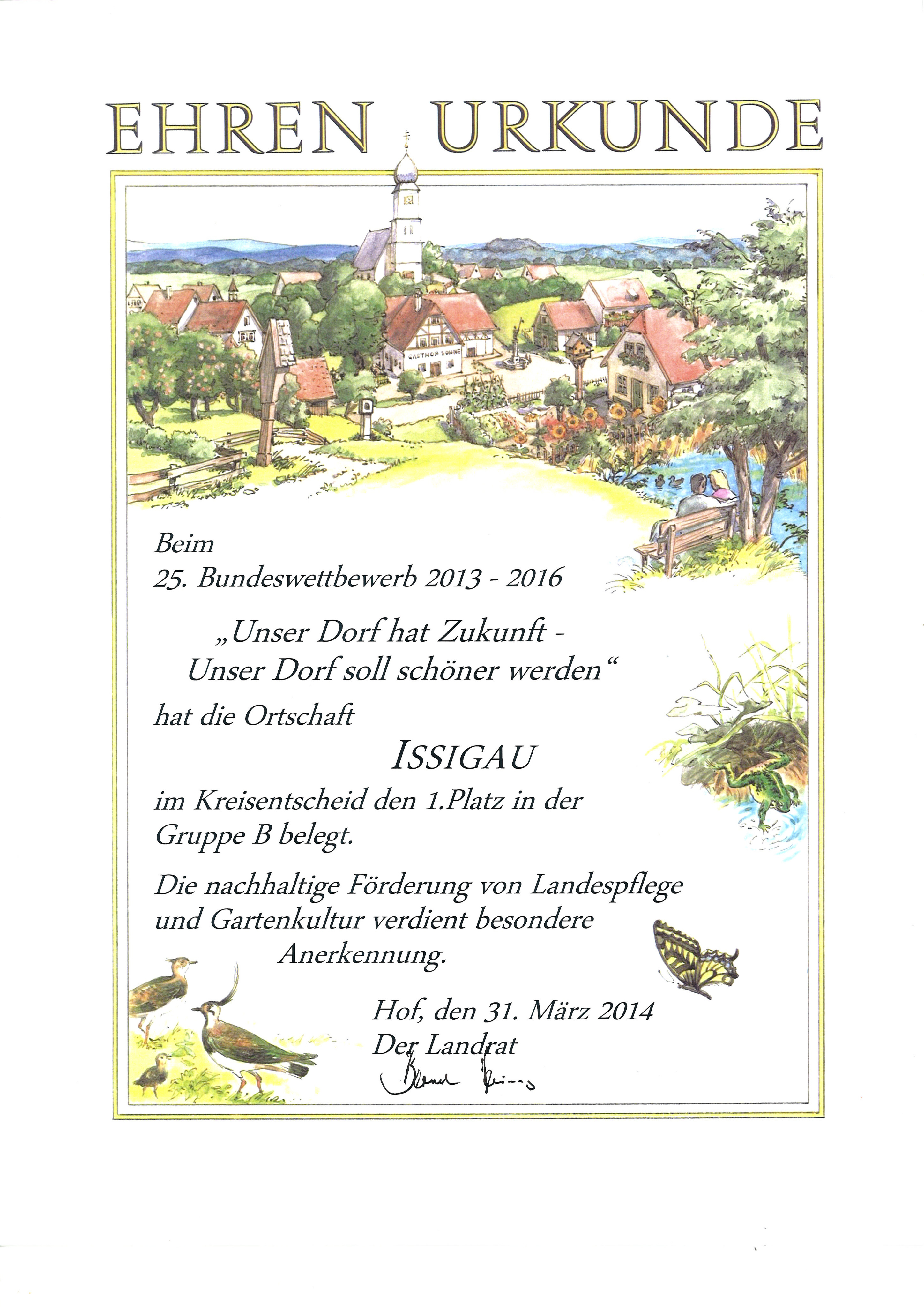 Die Gemeinde Issigau mit Erfolg am Bezirkswettbewerb âUnser Dorf soll schöner werdenâ bzw. âUnser Dorf hat Zukunftâ teilgenommen.